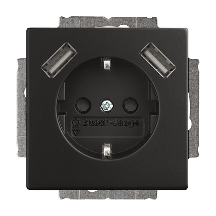 Pistorasia, Impressivo, 1-osainen, maadoitettu, 2 x USB A laturilla,matta musta Nimellisjännite: 250 V~
