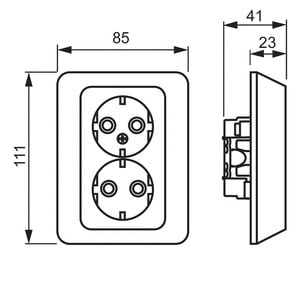 Pistorasiassa on liittimet kutakin kosketinta kohden ja niihin voi kytkeä max 4 johtoa (haaroitusmahdollisuus). Liittimet on hyväksytty ML ja MK johtimille. Ei potentiaalivapaita liittimiä. Pistorasian runko on kosketussuojainen ilman peitelevyä. Pistorasiaan voi lisätä kynnet työmaalla.