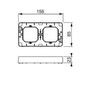 Pinta-asennuskotelo Jussi uppoasennus tuotteille. Käytetään 85mm peitelevyjen kanssa. Kotelon korkeus 22mm.