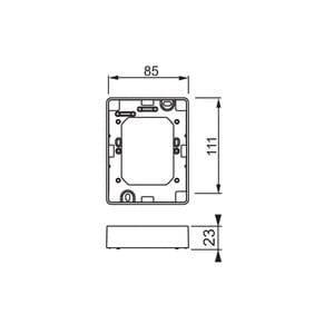 Pinta-asennuskotelo Jussi kaksoispistorasioille 302EUJ.1, 202EUJ ja 232 EUJ. Kotelon korkeus 22mm.