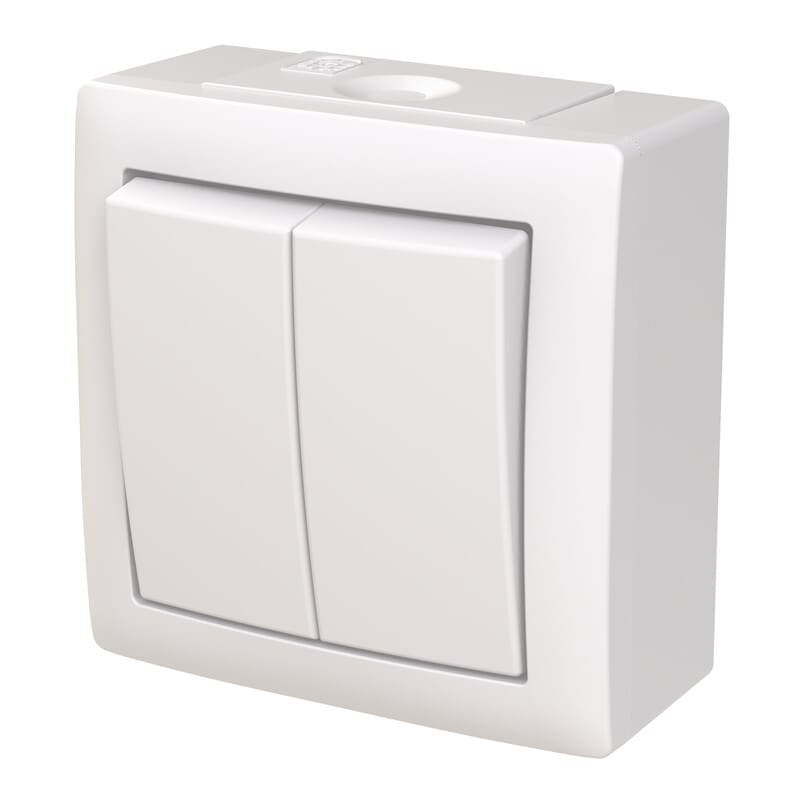 SAGA™ tuotteen pintamuoviosien, poislukien läpivientiaihiot, valmistukseen on käytetty biopohjaista muovia ja se on valmistettu nettonolla-tehtaassamme Suomessa. Pinta 5 kytkin IP44. Liittimiin voi kytkeä max 2 johdinta ja ne on hyväksytty ML ja MK johtimille. Muoviraaka-aineessa erittäin korkea UV-suojaus. Valkoinen RAL9003.