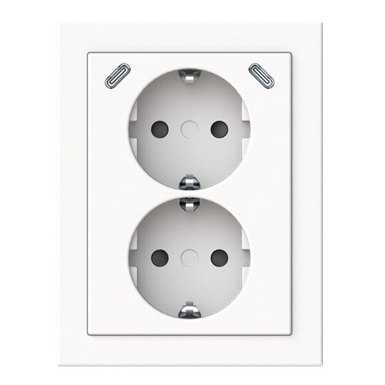 Pistorasia, Impressivo, 2-osainen, 2 x USB C laturilla, kulma-asennus, valkoinen Impressivo® 2-osainen kulmapistorasia kahdella sisäänrakennetulla USB C-latausportilla varustettuna.