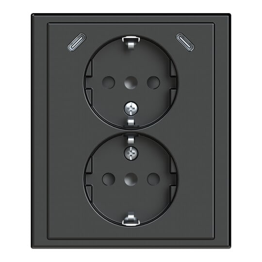 Pistorasia, Impressivo, 2-osainen, maadoitettu, 2 x USB C +C laturilla, antrasiitti Impressivo® kokopeitelevyllinen kaksoispistorasia kahdella sisäänrakennetulla USB C-latausportilla varustettuna.
