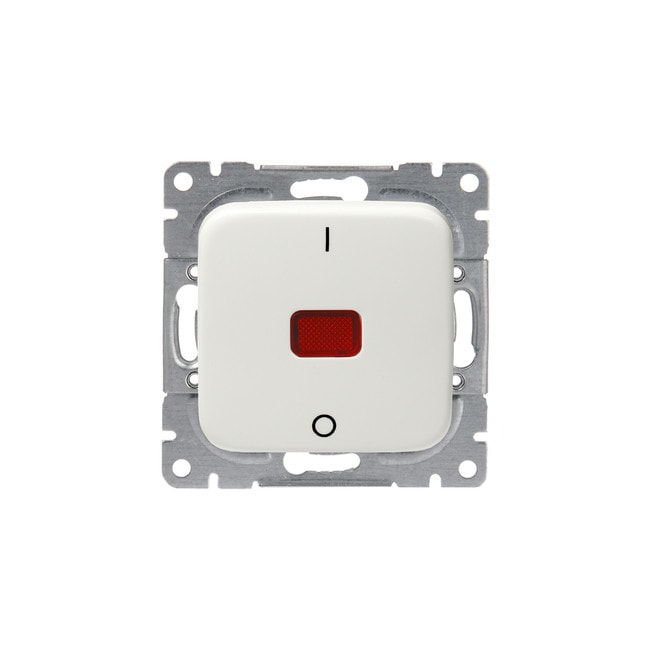 Kytkin jousikiinnitteisellä vivulla ja jousiliittimin. Liittimiin voi kytkeä max 2 johdinta ja ne on hyväksytty ML ja MK johtimille. Toimitetaan varustettuna merkkilampulla ja punaisella linssillä.