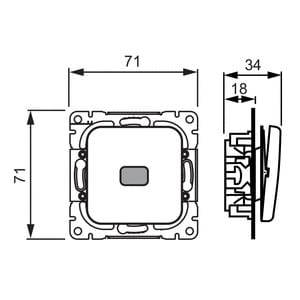 Kytkin jousikiinnitteisellä vivulla ja jousiliittimin. Liittimiin voi kytkeä max 2 johdinta ja ne on hyväksytty ML ja MK johtimille. Toimitetaan varustettuna merkkilampulla ja punaisella linssillä.