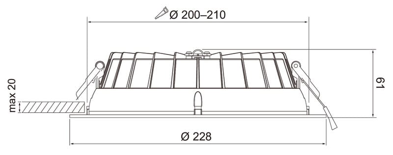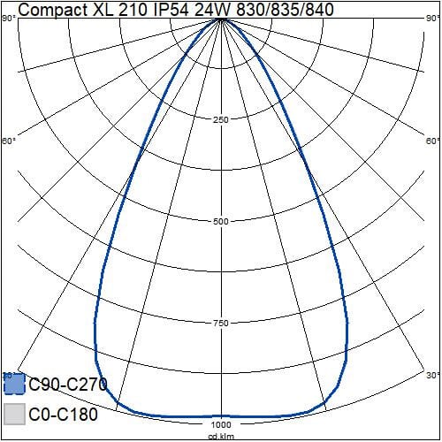 - 210 mm: 18 W 2650 lm, 20 W 2950 lm, 22 W 3200 lm, 24 W 3250 lm.