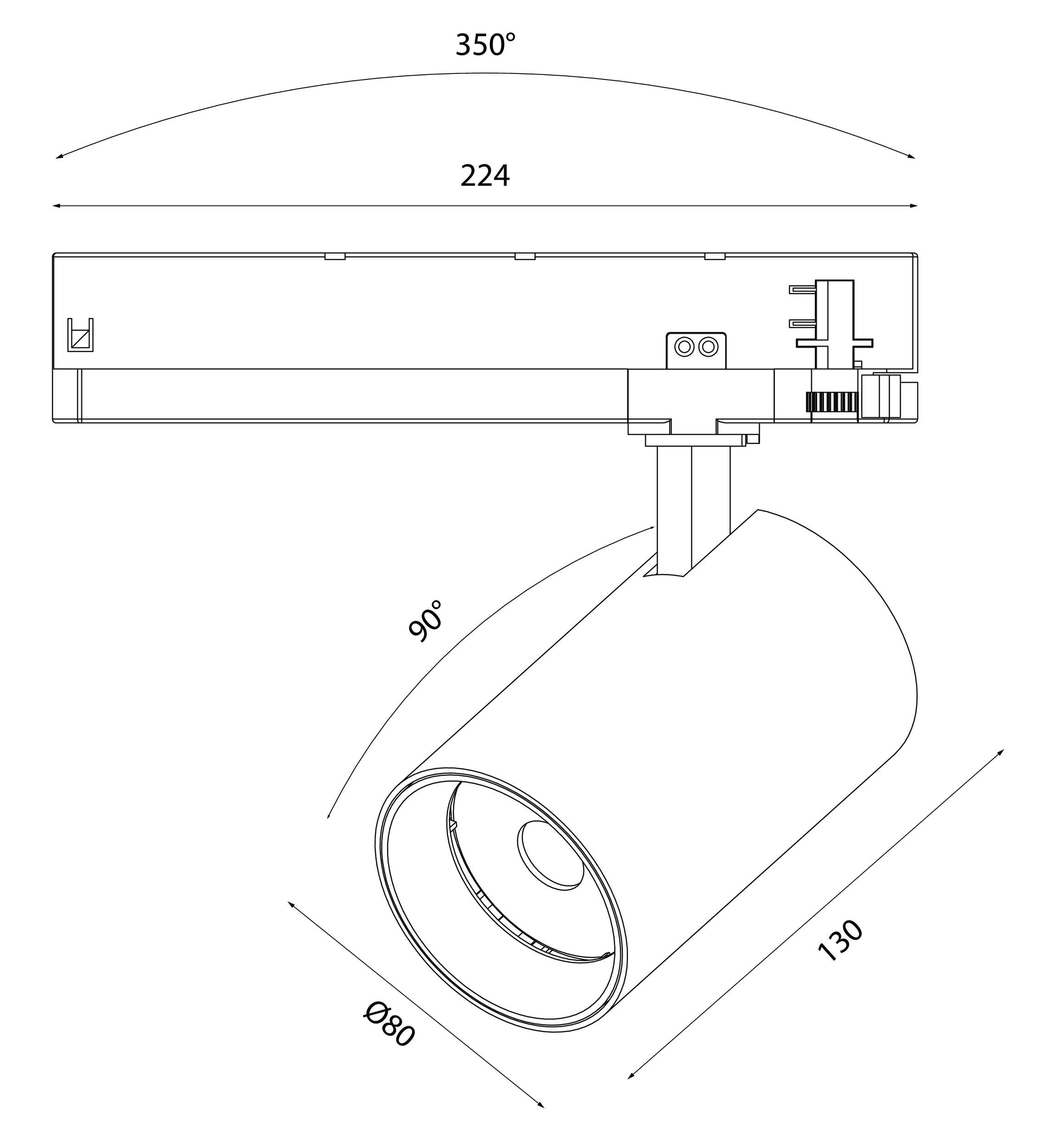 - Painevalettu alumiinirunko. Kupu polykarbonaattia. Kääntyvä ja pyörivä, fasetoitu alumiiniheijastin 36°. Lisätarvikkeena vaihtoehdot 15°, 25° ja 60°.