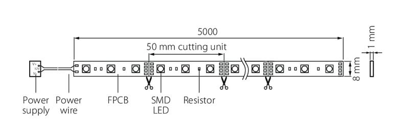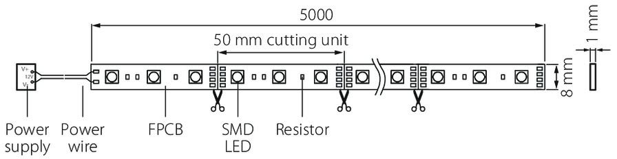 - Päällystämätön led-nauha 12V.