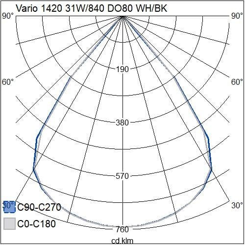 - Deep optic: 1140 mm / 25 W: WH/WH / 4600 lm. WH/BK 4000 lm. 1420 mm / 31 W: WH/WH / 5800 lm. WH/BK 5000 lm.