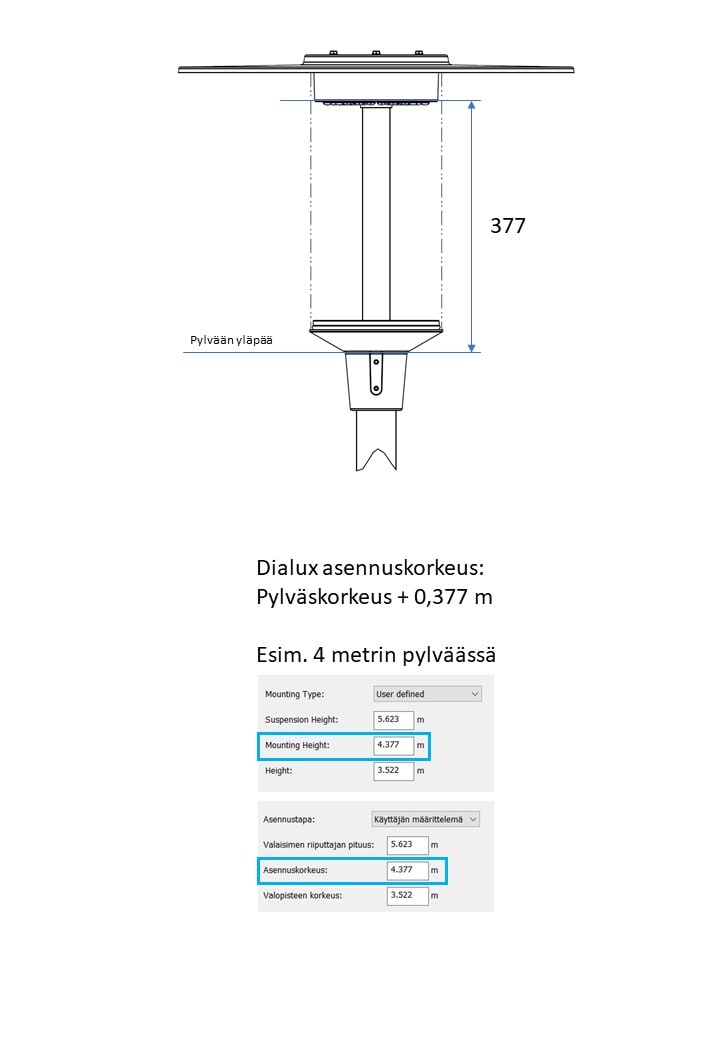Asennustapa - pylvään päähän