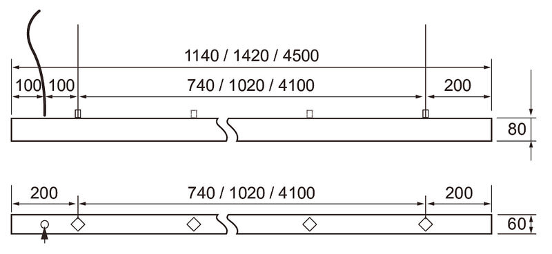 - Deep optic: 1140 mm / 25 W: WH/WH / 4600 lm. WH/BK 4000 lm. 1420 mm / 31 W: WH/WH / 5800 lm. WH/BK 5000 lm.