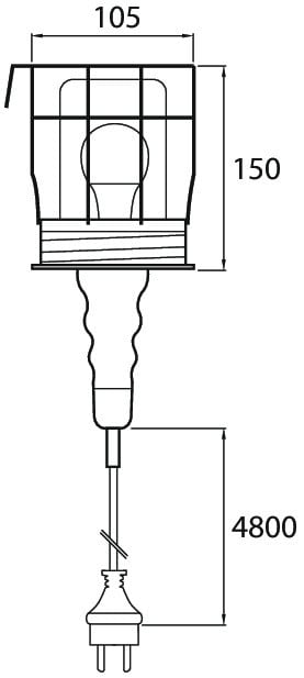 Roiskevesitiivis lisä-, työ- ja remonttivalo sisä- ja ulkokäyttöön (pakkaus ei sisällä lamppua). Lasikuvun suojana on metallikehikko. Rakenne Muovirunko, kupu lasia, metallikehikko. Valonlähde E27 maks. 60W. Lamppusuositus: Airam Led Classic A60 E27. Asennus Pistotulppaliitäntä, musta kumikaapeli H07RN-F 2 x 1,0 mm², pituus 5 metriä. Suojausluokka IP54 (maks. - 35 °C)