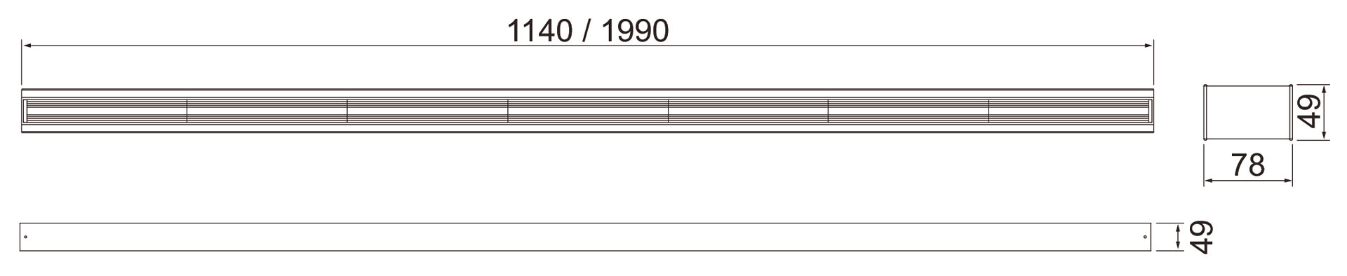 - 1140 mm: 50 W / 8300 lm; 62 W / 10 000 lm; 89 W / 14 000 lm.
