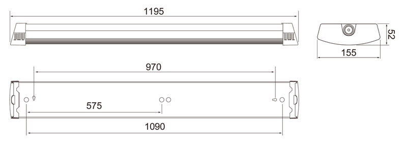 - 1200 mm: 23 W / 3200 lm, 29 W / 4000 lm, 35 W / 4900 lm, 40 W / 5600 lm.