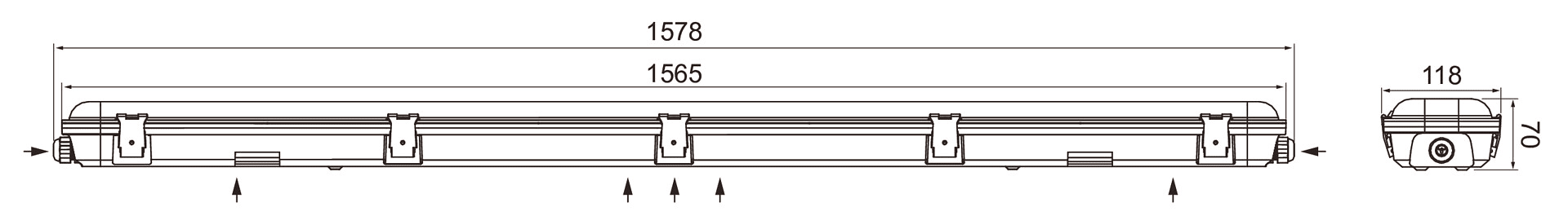 - 1200 mm: 40 W / 6000 lm; 34 W / 5100 lm; 28 W / 4200 lm; 22 W / 3300 lm.