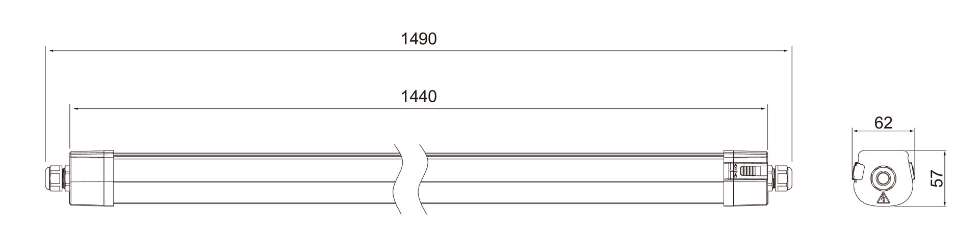 - 1500 mm: 26 W / 4160 lm, 33 W / 5280 lm, 38 W / 6080 lm, 45 W / 7200 lm.