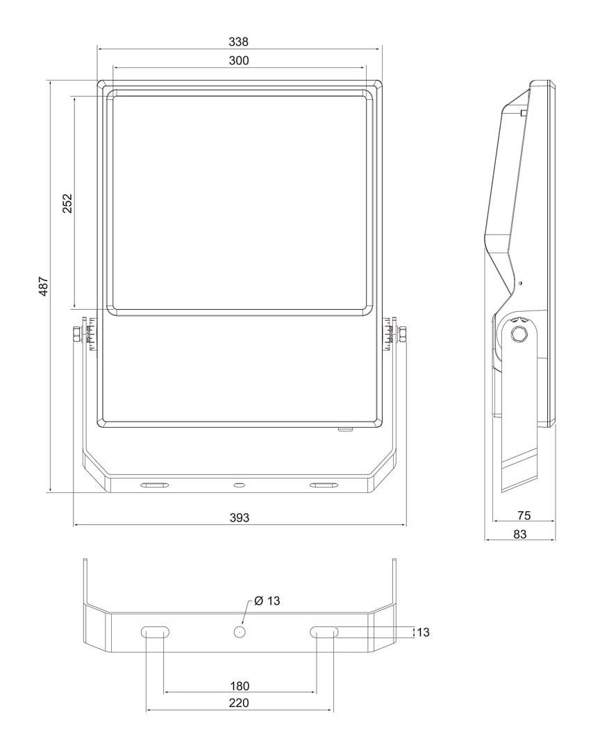 300W 4000K 36000lm Avauskulma Leveä säde 40-80°; Ei him; IP66; IK08; SL I; L70B50 100000h; LED, kiinteä; Sisältää lampun; CRI>70; SDCM5; Päättyvä; 3x1mm²; Kotelo al; Väri har; Suojus Läpinäkyvä lasi