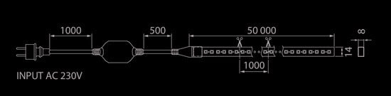 - Sukopistotulpallinen 1,5 m syöttökaapeli. Pinta-asennus Rigel profiiliin tai erillisillä kiinnikkeillä.