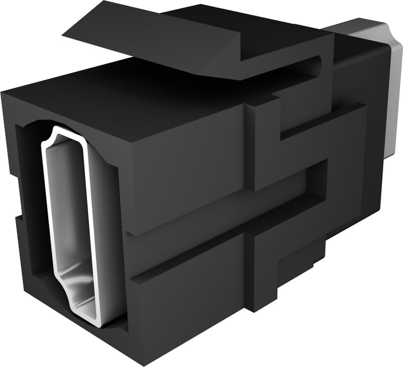 HDMI keystone 2.0. Käytetään yhdessä Bachmannin keystonekehysten kanssa pistorasiapaneelien custom moduuliaukoissa. Käytetään Bachmannin pistorasiapaneelin custom moduuleina yhdessä keystonekehysten 1435610 sekä 1435611 kanssa täydentämään paneelien varustelua. Napsautetaan keystonekehykseen.