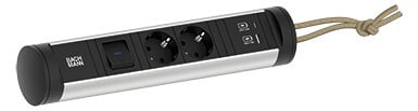 Tässä mallissa on 2 schukopistorasiaa, sekä kytkin ja USB A&C-latausmoduuli, jossa on yksi A-latausliitin sekä yksi C-latausliitin. Paneelissa on kiinteä 2,5m virtajohto kulmapistokkeella.