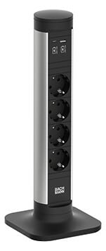 CYCLE Pole S, minipistorasiapylväs 4 :llä pistorasialla, kytkimellä jaUSB A<(>&<)>C-latauksella. Lataustehot liittimistä USB- A 18W ja USB-C22W CYCLE POLE S, liikuteltava minipistorasiapylväs. CYCLE POLE S-minipylväässä on 4 schukopistorasiaa sekä USB A&C-latausmoduuli.
