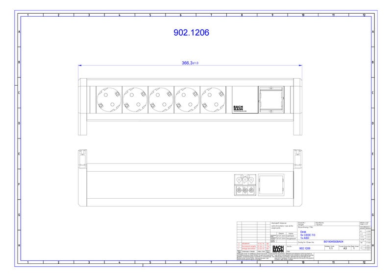 BACHMANN - Pistorasiapaneeli - DESK 1, 5 x pr + 1 x CM