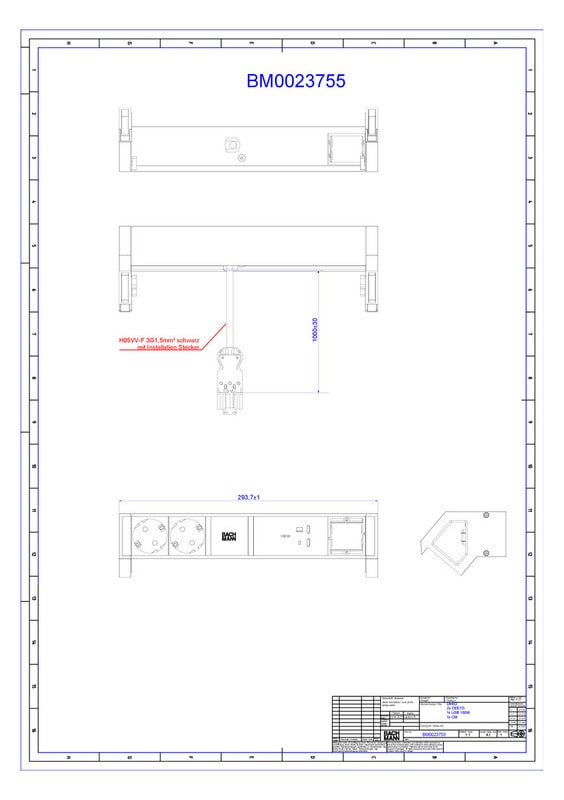 BACHMANN - Pistorasiapaneeli - DESK 2, 2x pr +USB C/C 100W+CM