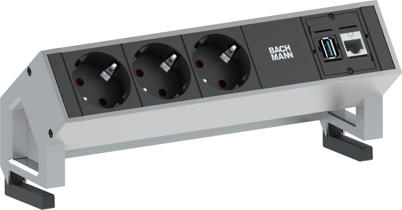 BACHMANN - Pistorasiapaneeli - DESK 2, 3x pr + 1x CM, inox.