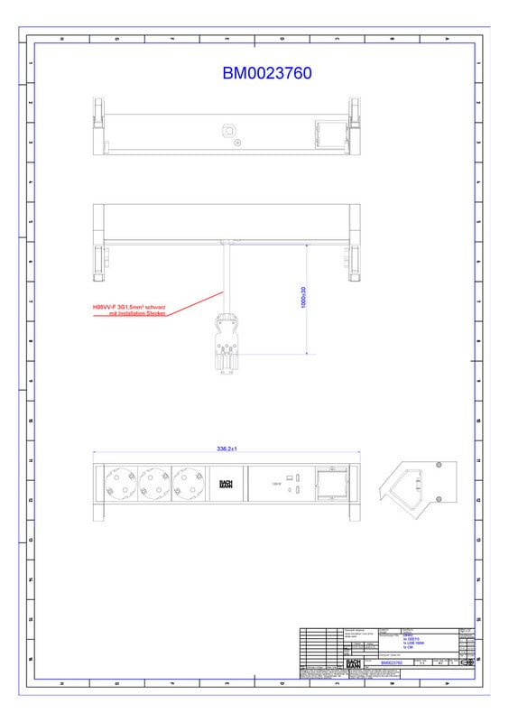 BACHMANN - Pistorasiapaneeli - DESK 2, 3x pr +USB C/C 100W+CM