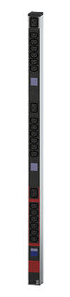 19" pistorasiapaneeli 1HE + 18 x C13 + 3 x C19. Tehonmittaus. LiitäntäCEE 3x16A. Väri punainen/musta/hopea