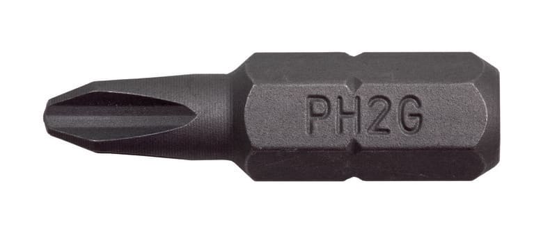 1/4 tuuman kuusiovääntiö DIN3126 ja ISO 1173, tyyli C 6.3.PH2G-ruuveille. Pituus 25 mm. Käytetään pienennetyllä karanhalkaisijalla, kipsilevyseinissä, kaikkeen ruuvikäyttöön. Kestävääerikoisterästä. Sinkki-fosfaattipinnoite. Jämäkät ja kestävät kärjet.