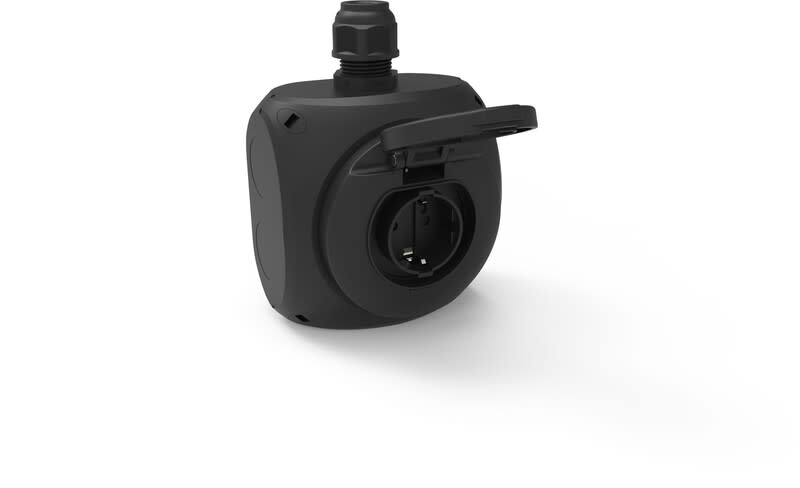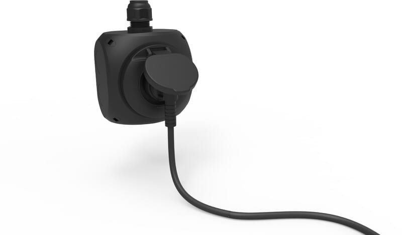 Super-sukopistorasia pinta-asennukseen, jatkuvaan 16A 1-vaihe lataukseen + sulkeutuva apukosketin. M25 ylhäällä, 1,5 - 2,5 mm2, ruuviliittimet. Kotelo 130x130, IP44, Väri RAL-9011. 16A Super-suko latauspistorasia