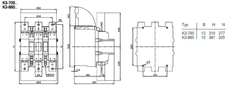BENEDIKT & JÄGER - Kontaktori kela 230VAC - K3-860A22 500kW 3s 2s+2a APK