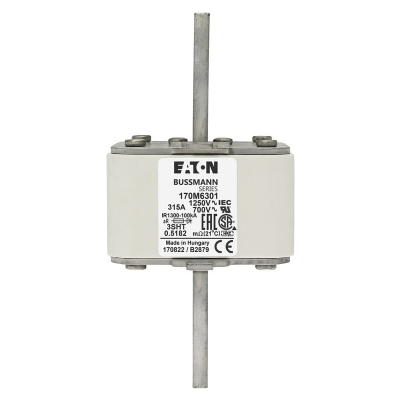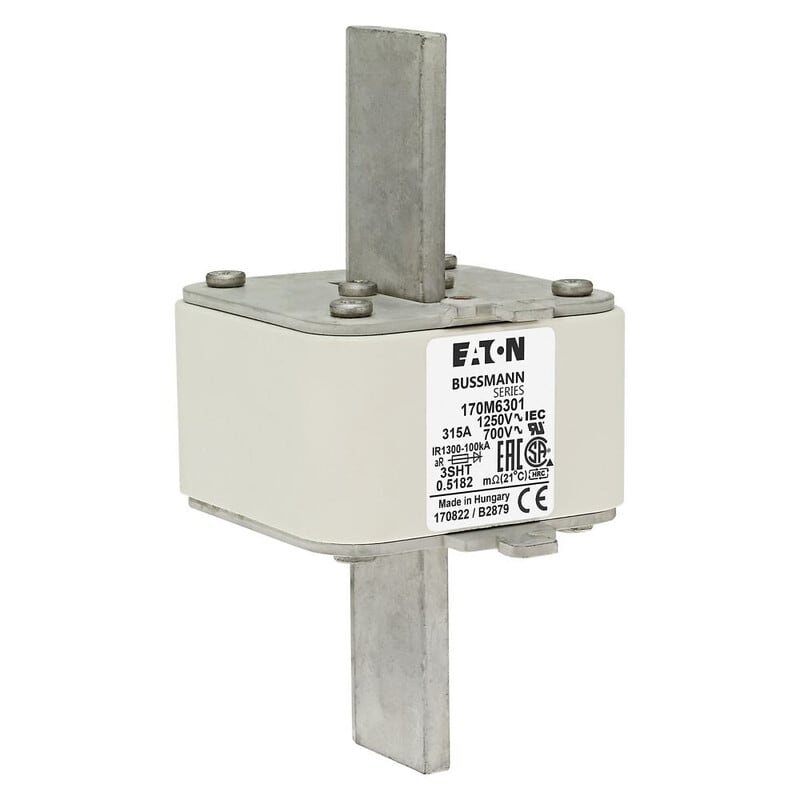 Erikoisnopea kahvasulake, 315 A, 1250 VAC, koko3, 76 x 76 x 155 mm, aR, IEC, indikointi. Suojausluokan aR- sulake on tarkoitettu esim. taajuusmuuttajan oikosulkusuojaukseen. Huom. aR-luokan sulakkeita ei pitäisi käyttää korvaamaan gS- tai gR-suojausluokan sulakkeita, koska aR-sulakkeet ovat useimmiten nopeampia (aR sulakkeiden I2t- arvo on pienempi).