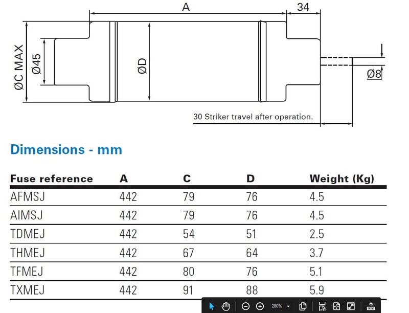 24TDMEJ16 24kV 16A pituus 442mm halkaisija 51mm Suurjännitesulake 24TDMEJ16 24kV 16A pituus 442mm, halkaisija 51mm, DIN, iskurilla