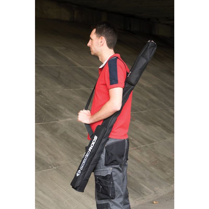 Mighty Rod säilytyspussi. 1000 mm tankojen varastointiin ja kuljetukseen. 2 taskua työkalulaatikkotankojen (330 mm) ja lisävarusteiden säilyttämiseksi. Säädettävä olkahihna. Mitat: 530 x 125 x 60 mm.