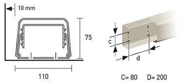 Asennuskanava 110x75 mm 2 metriä 110x75mm kanavaan mahtuu kahdet putket asennettavaksi.