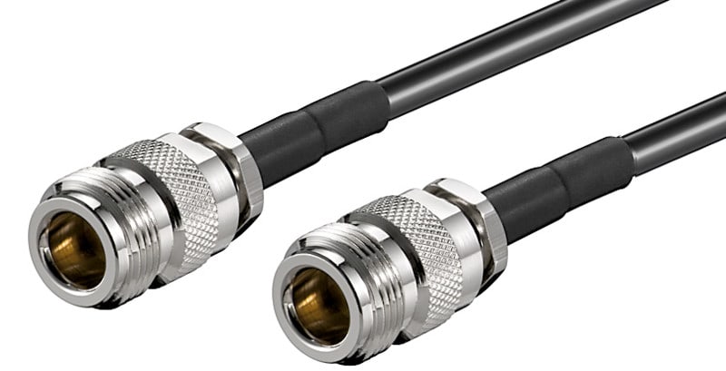 Matalahäviöinen LMR400 liitosjohto N-naaras ja N-naaras liittimillä, kaapelin pituus 15 metriä.