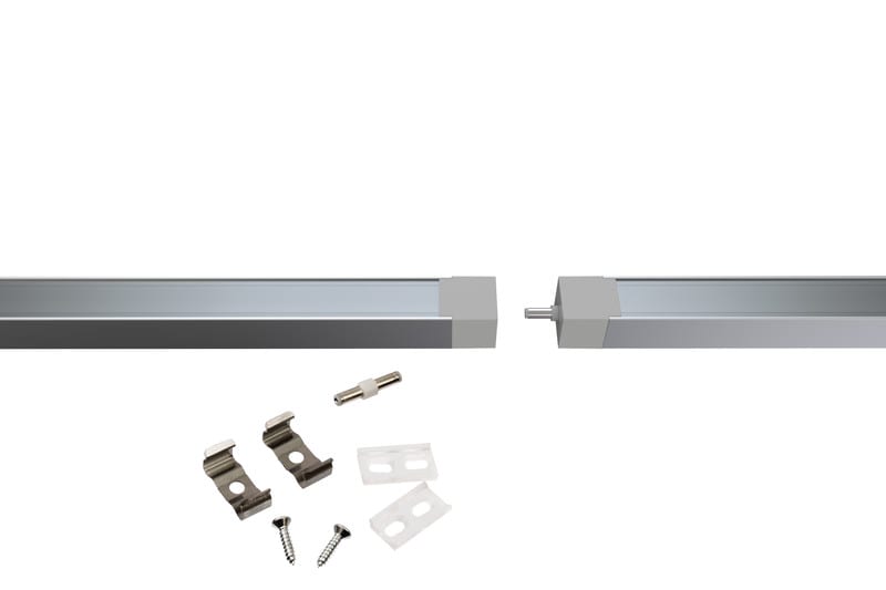 Huomioi asennusta suunniteltaessa, että profiilin syöttökaapelin liitin lisää kokonaispituutta 20-40 mm. Helppo asentaa mukana tulevilla valmiilla kiinnikkeillä. Profiileja voi liittää peräkkäin max. 5 m.