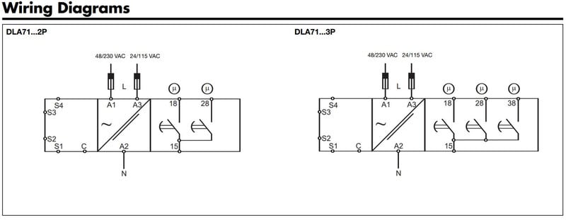 DLA71DB232P valvontarele, 2 pumppua, 2xSPST, 115 / 230 VAC Pumppujen vuorottelurele 2 tai 3 pumpulle