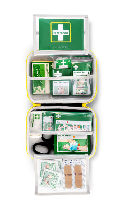 Ensiapulaukku Medium on valmistettu kulutusta kestävästä kumimaisestamateriaalista, joka pitää pölyn, kosteuden ja lian ulkopuolella.Välineet pysyvät puhtaina ja ovat aina käyttövalmiina. Ensiapulaukku Medium on valmistettu kulutusta kestävästä kumimaisesta materiaalista, joka pitää pölyn, kosteuden ja lian ulkopuolella. Välineet pysyvät puhtaina ja ovat aina käyttövalmiina. Tuotteet on pakattu läpinäkyviin muovitaskuihin, jotka antavat selkeän yleiskuvan, ja oikean tuotteen löytäminen on helppoa, kun jokainen sekunti on tärkeä. Merkkivärit vihreä ja keltainen tekevät laukusta jo kaukaa näkyvän. Sisältö: 1 Cederroth 4-in-1 iso ensiapuside 1 Cederroth 4-in-1 pieni ensiapuside 10 Salvequick laastari 6 Salvequick Haavapyyhe 4 Salvequick Maxi Cover laastari 1 Elvytyssuoja 2 Käsienpuhdistuspyyhe 2 paria Suojakäsine 1 Pelastuspeite 1 Elastinen tukiside 1 Cederroth Burn Gel Palovammataitos, 10 x 10 cm 1 Sakset 1 Ensiapuohje Mitat: L 231 x K 190 x S 78 mm