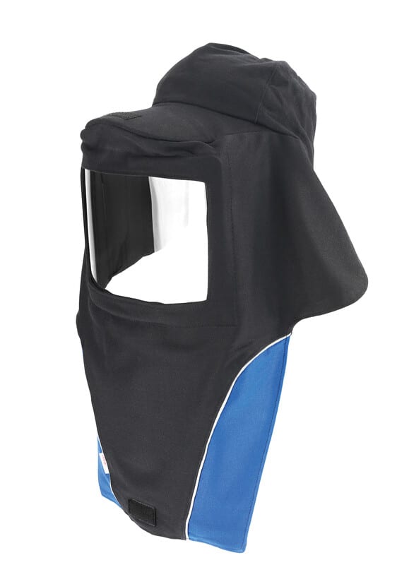 Sähköasentajan kasvonsuojain hupulla, DIN EN 166:n mukaisesti, jotakäytetään valokaarien kasvon- ja korvasuojana lyhytaikaisissa kytkentätöissä ja muissa jännitteisissä töissä. Tyyppitestattu ja CE-hyväksytty.