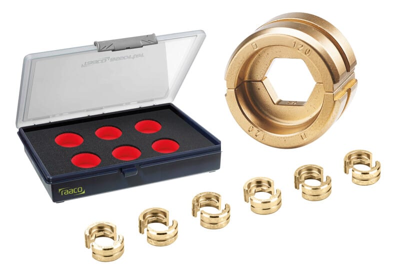 Puristemuottisarja 6-osainen, putkikaapelikengät kuusikulmaiset, 70mm² -240mm². Toimitetaan korkealaatuisessa säilytyslaatikossa.