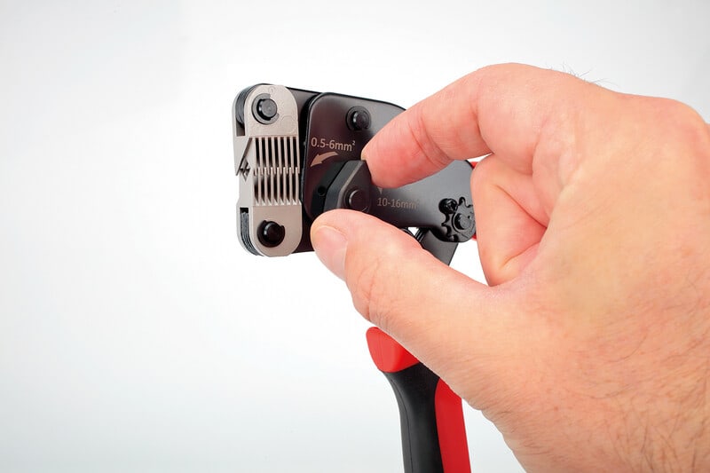 FLEXI-CRIMP PRO; Puristuspihdit pääteholkeille 16 mm2 asti luotettavalla tekniikalla,puristusalueet voidaan asettaa valintakytkimellä 0,5 - 6 mm2 ja 6–16 mm2. Myös 2 x 0,5 - 2 x 6 mm2 . Sopii kaikille johdintyypeille, jopa ohennetuille, hienosäikeisille johtimille IEC 228!