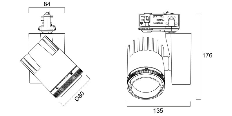 - Valokeilan portaaton säädettävyys 8° - 55°
