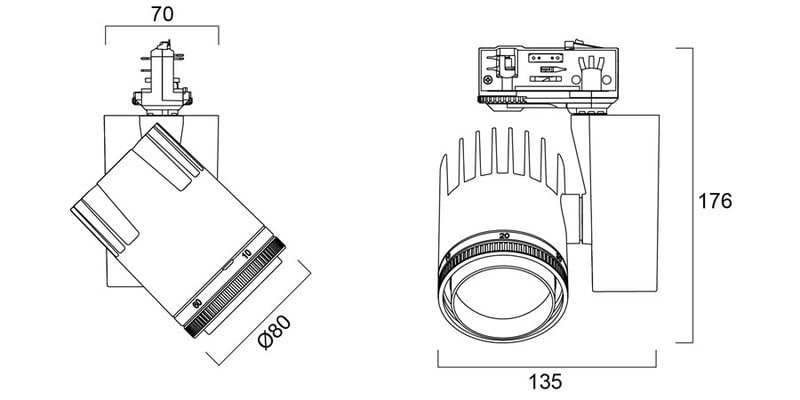 - Valokeilan portaaton säädettävyys 8° - 55°
