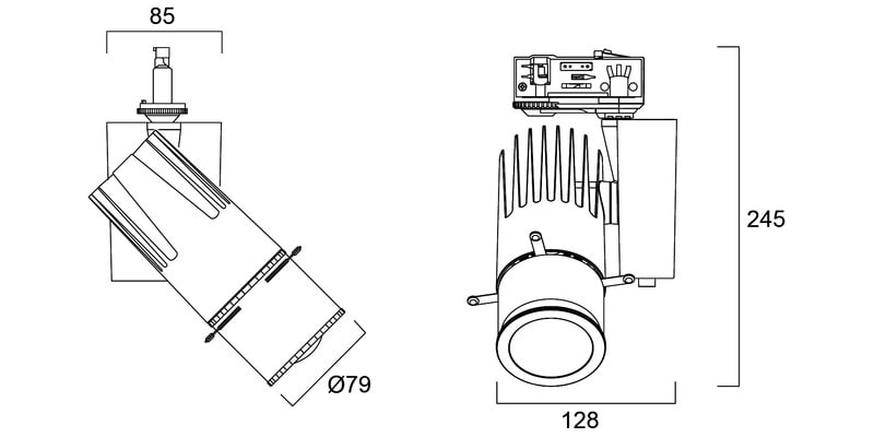 - Sisäänrakennettu himmennin ja DALI (Huom. DALI-mallien Lytespan LS-3 DALI –virranotin sopii vain Lytespan LS-3 virtakiskoon)