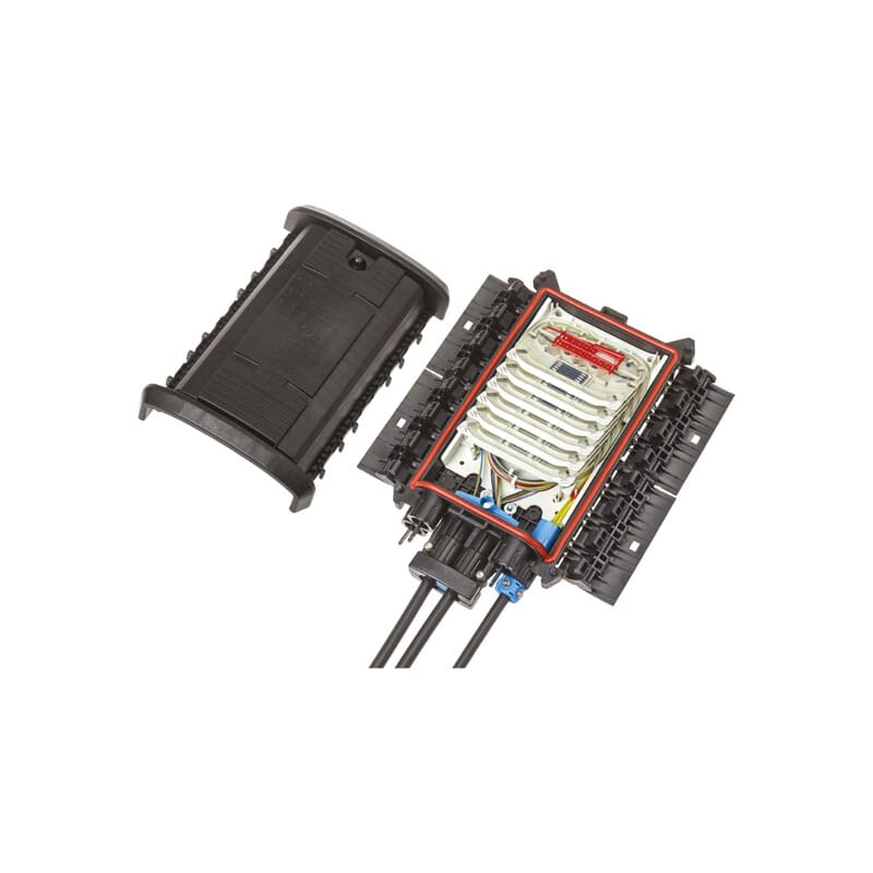 BPEO Kuitukotelo S1-FDP BRANCH - 1xD18 10xS9.5 (382mm x 204mm x 92mm)IP68 Corningin Evolv BPEO kuitujatkoskotelot sopivat monenlaisiin käyttökohteisiin. Koteloita on saatavilla eri kokoisina ja niitä voidaan käyttää sekä maanpäällisissä (pylväät, julkisivut) että maanalaisissa (kaivot) asennuksissa. Niitä käytetään erityisesti Kuitu kotiin (FTTH) -asennuksissa mutta myös kaikentyyppisissä ulkoverkon kuitukaapeliasennuksissa.