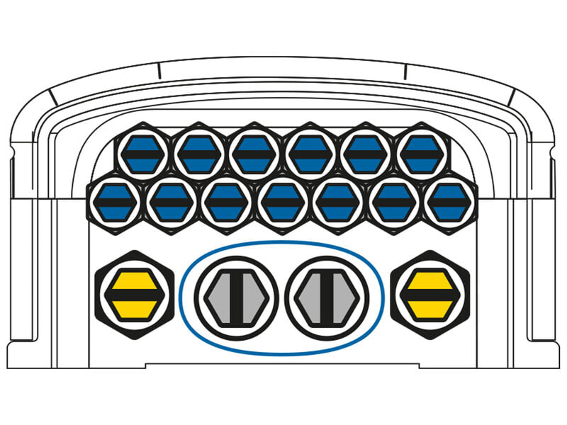 - 13 porttia 3.5-9.5 mm kaapeleille