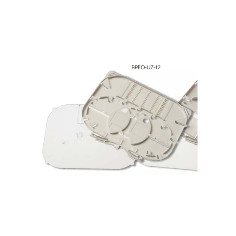 BPEO K7 Jatkoskasetti, 1 paikka, Uni Zone-12 BPEO K7 jatkoskasetteja käytetään erilaisissa Corning BPEO jatkoskoteloissa. BPEO-UZ-12 jatkoskasetti on 5mm korkea ja vie yhden paikan jatkoskotelossa. Siihen mahtuu 12 liitosta ja se mahdollistaa sekä hitsattujen että mekaanisten jatkosten käytön.
